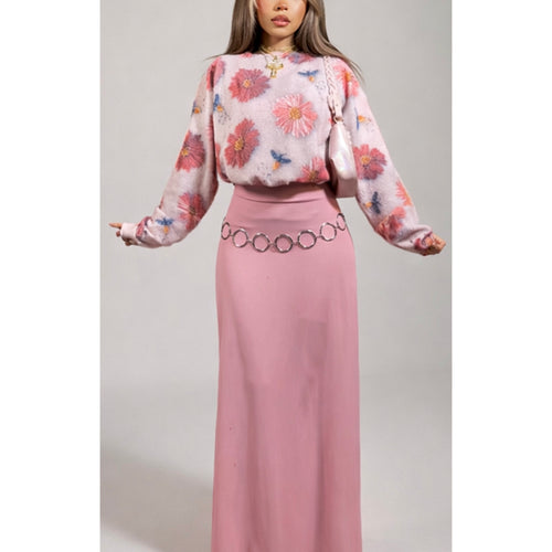 Title:Blush Pink Tulle Floral Maxi Dress -